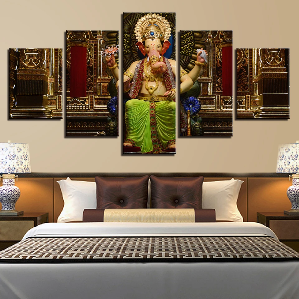 Us 5 49 40 Off Hd Decor Frame Wall Canvas Modern Home Art 5 Pieces India Tibetan Ganesha God Picture Art Printed Oil Painting On Poster Artwork In